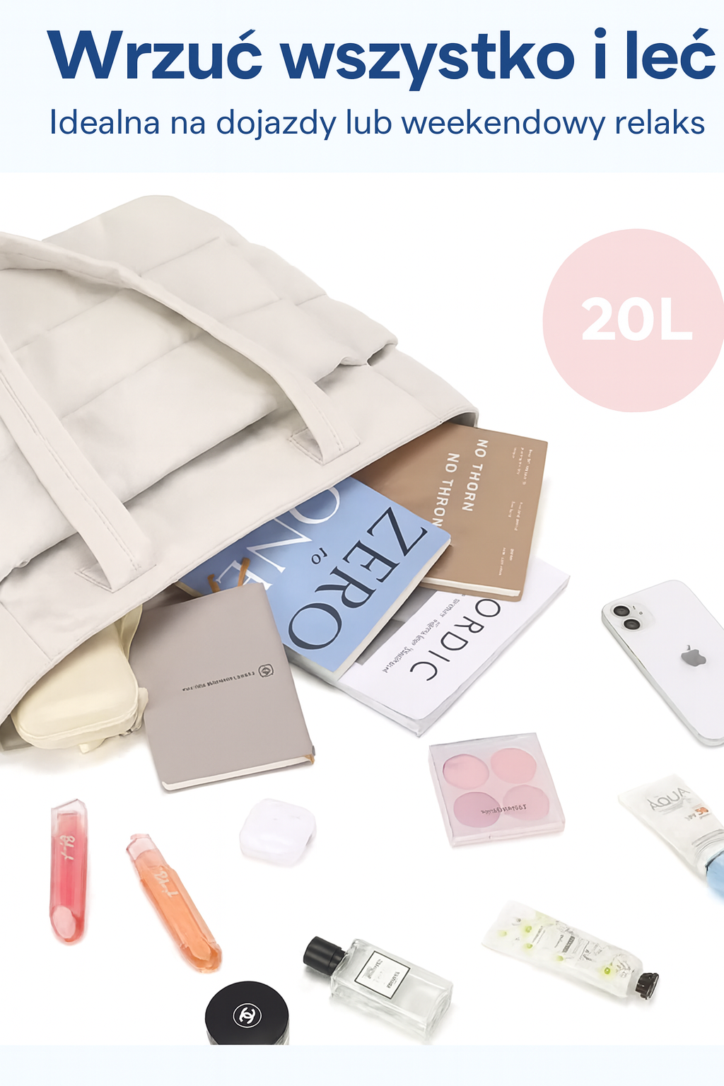 Lekka, pojemna i wygodna torba na każdy dzień – do pracy, na uczelnię, zakupy i weekendowe wyjazdy. Jedna torba, zero kompromisów.